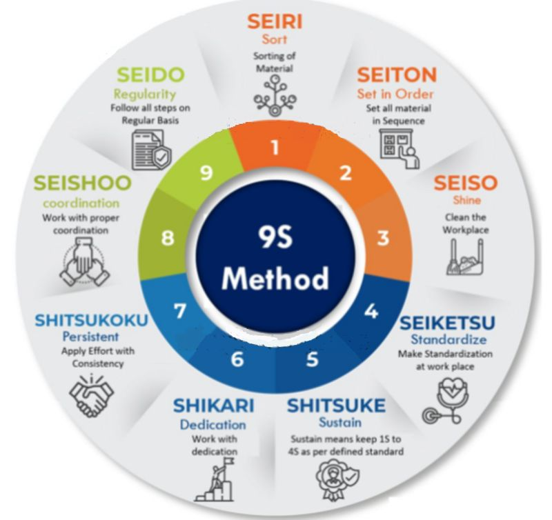 9S: 5S plus Hingabe, Ausdauer, Koordination und regelmäßige Wiederholung